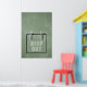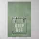 Contenedor verde metalizado y puerta bisagra con el botón de mantener fuera escrito sobre él