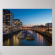 Fotografía de viaje del puerto Yacht de Köln (Colonia) durante la Hora Azul. Alemania, Europa.