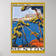 Un cartel vintage del puerto de Menton France restaurado a sus colores vivos.