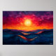 Póster Puesta de sol abstracta vívida sobre olas ondulant