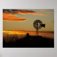 Foto de una vibrante puesta de sol con un antiguo rancho y molino de viento en primer plano.