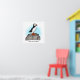 Texto personalizado Arte digital dibujado a mano Puffin sobre una roca de fondo azul.