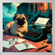 Perro Pug con piel brillante y una máquina de escribir de hilo