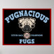 Logo del equipo para los ficticios "Pugnacious Pugs, Fetch-Ball 2013 Champions". Texto con un divertido dibujo de pug con ojos de google, sobre camisetas, caramelos, tarjetas, regalos.