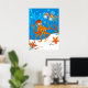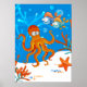 Una ilustración gráfica acuática de un pulpo lindo y una estrella de mar divertida en un cartel. ©2013charmainepaulson