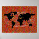 Un mapa negro gráfico del mundo con el patrón de puntos de polka de color en el fondo