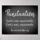 Puntuación Commas Funny Chalkboard Poster. Diseño tipográfico blanco en pizarra negra. Poster humorístico para profesores de inglés, autores, escritores, bloggers, editores, editores, poetas, indias y otras personas de biblioteca. Ideal para librerías, cafés, ferias de libros, eventos y talleres de autores, aulas, retiros de escritores, regalos y más. El cliente puede personalizar todo el texto, las fuentes y los colores con las herramientas proporcionadas en el menú de personalización de Zazzle. Por favor visite nuestra tienda, Bookles, para descubrir nuestra creciente gama de productos, y por favor contáctenos si necesita cualquier ayuda.
