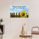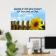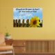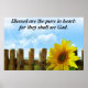 Un girasol solitario está en contra de una valla de postas con el sol brillando en un hermoso día. El verso Mateo 5:8 Bienaventurados son los puros de corazón, porque verán a Dios impreso en negro. El girasol significa pensamientos puros.