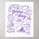 Póster Purple Coquette Bow Cheer Game Day Doodle Touchdow