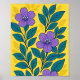 Póster Purple Flowers & Teal Leaves on Yellow Background