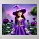Este caprichoso poster cuenta con un chica vestido de bruja morada entre vibrantes rosas morados, que mezcla un encanto de fantasía con vibraciones místicas y encantadoras. Terminado como una impresión de arte de medios mixtos.
