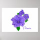 Mi pintura digital de tres petunias moradas claras. Bonito y diseño botánico sencillo. El texto que dice "Petunia" puede ser editado o eliminado. Se puede cambiar el color de fondo.