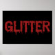 Purpurina en tirografía sanguínea. Bluttiger Schriftzug, für etwas Blut im Glitzer, aber nur ein bisschen.