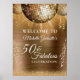 Infórmele a sus huéspedes que han llegado con este poster de moda de oro 50 y fabuloso de celebración con bolas de disco doradas brillando sobre un fondo metálico dorado con correas fiestas y purpurina de oro. Fácil de personalizar con las opciones de personalizado. Utilice el botón 'Personalizar' para personalizar del producto o agregue texto.