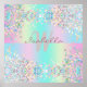 Póster de purpurina holográfica de unicornio - Un póster colorido y brillante de moda con mezcla de turquesa, rosa y malva y purpurina amarilla clara. Puedes personalizar este póster añadiendo tu nombre y iniciales.