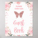 Purpurina rosa Mariposa Huéspedes Libro Rótulo cumpleaños Moda dulce mariposa temática cartel de cumpleaños con dos adorables arreglos florales rosas color agua y mariposa falsa purpurina rosa. Este diseño de señas de cumpleaños de mariposas dulces es un lindo añadido para tu pequeña fiesta de cumpleaños con tema mariposa.