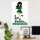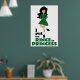 Este poster de danza irlandesa de la princesa "Puse el príncipe en la princesa" presenta a una bailarina irlandesa, con el pelo negro y el vestido verde, bailando zapato duro.