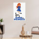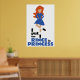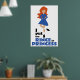 Este poster de danza irlandesa de la princesa de Rince, presenta a un bailarín irlandés, con el pelo rojo y el vestido azul, bailando zapato duro.