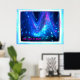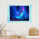 Una interpretación fractal rosa y azul de las auroras boreales reflejada en la superficie del mar. Qaanaaq es un asentamiento en el norte de Groenlandia. Añade tu propio texto.