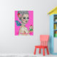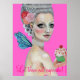 Que coman quequitos es mi pintura de acrílico de arte original de Marie Antoinette como Faerie Godwoman. Que coman quequitos. Ella está parada frente a una pared azul francesa con estampado de fleur de lys; es de piel desnuda, pero está vestida con perlas, plumas y rosas, con su pelo blanco en un pompadour. Lleva una tarta llena de pequeños corazones de amor rojos y una cereza encima.