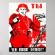 Este famoso poster es el trabajo de Dmitrii Moor (el seudónimo de Dmitrii Orlov, tomado del héroe bandido de la obra de Friedrich Schiller The Robbers). Moor fue uno de los principales fundadores del diseño poster político soviético. Aquí, la figura central con el dedo acusador, hombres motivadores para alistarse en el Ejército Rojo, hace eco de los igualmente famosos posters de reclutamiento de la Primera Guerra Mundial británica que incluyen a Lord Kitchener, pero agrega un giro distintivo con sus antecedentes de fábricas fumadores y el uso de un soldado común y corriente en lugar de un comandante.