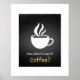 Añade una pizca de calor a tu pared - "¿Qué tal una copa de café?" En este elegante poster de temática cafetera podrá disfrutar de una acogedora atmósfera de café. Con una atractiva oferta y un diseño moderno, es perfecto para cocinas, despachos, rincones de café o cafeterías. Un lugar de obligada visita para los amantes del café que disfrutan de empezar el día con una mezcla audaz y un toque de inspiración en la pared.
