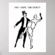 "¿Me da este baile?" con una gran imagen retro en blanco y negro de los años 20. Puede personalizar, personalizar el texto. El diseño representa la silueta de una pareja elegante bailando en un fiesta. Lleva puesto un cigarrillo, lleva puesto un vestido. Esta imagen minimalista y simple refleja en gran medida la atmósfera de los locos años 20, también llamados años locos o, en francés, Les Années Folles, cuando aparecieron bailes nuevos, como Charleston, Breakaway, Lindy Hop, junto a bailes de salón de baile más tradicionales, como el foxtrot, el vals o el americano váyase. Gran idea de regalo para bailarines de salón de baile, amantes de la imagen vintage o para un regalo de pareja, por ejemplo para el el día de San Valentín.