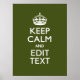 Su Keep Calm dice sobre una bonita decoración de color verde oliva personalizado. Un estilo "Keep Calm" personalizado que dice sobre un regalo amable. Intenta con humor o capricho con tus palabras creativas en dos líneas editables de texto. Recuerde usar las letras CAPITAL para obtener los mejores resultados. Los diseños de bordado están disponibles en una amplia selección de opciones de color populares. Utilice el vínculo "Preguntar a este diseñador" para contactarnos con sus solicitudes de diseño especiales o para obtener ayuda con su proyecto de personalización.
