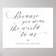 Simple Elegante Guía de caligrafía guion Guía alternativa Guía de visitas porque usted quiere decir el mundo para nosotros por favor firma nuestro mapa - Rótulo de la pensión de invitados en hermosas letras de lujo y su texto personalizado. Un diseño formal, elegante y sencillo, en blanco y negro o en cualquier color de fondo que elija. Simplemente haga clic en el enlace personalizar adicional, que se muestra bajo el área de personalización de texto a la derecha, y elija el fondo de color personalizado. Esta plantilla de poster de signos facilita y agiliza la creación de increíbles adiciones a la decoración boda. Se pueden ampliar los Rótulos, hay muchos tamaños para elegir, así como opciones para el enmarcado y apareamiento de personalizados. Señalización de personalizados bodas. ~ Revise mi tienda o colección a continuación para ver más señales complementarias para su boda