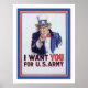 Te Quiero ~ Poster de la Vieja Guerra Mundial. El fabuloso poster del Tío Sam apuntando hacia afuera hacia el espectador. Este afiche vintage ha sido bellamente mejorado y restaurado a su antigua brillantez por los artistas de The Vintage Factory. También hemos agregado una frontera de cortesía alrededor de la imagen que realmente la convierte en una atractiva obra de arte. También tenemos muchos más bellos afiches vintage.