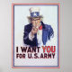 Te Quiero ~ Poster de la Vieja Guerra Mundial. El fabuloso poster del Tío Sam apuntando hacia afuera hacia el espectador. Este afiche vintage ha sido bellamente mejorado y restaurado a su antigua brillantez.