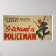 De la vasta colección de Afiches de la Administración de Proyectos de Trabajo (WPA) y de Guerra de Zazzle —un asombroso surtido de imágenes icónicas diseñadas para promocionar las artes, el bienestar público y el patriotismo— Este poster conmemorativo presenta a un poster del Proyecto del Teatro Federal de -Quiero un Policía- en el Teatro Savoy en San Diego, mostrando a un policía corriendo con un arma tirada y cargando un bastón, creado en 1110000000000000000 936.