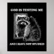 Póster Raccoon Meme Divertido Dice Que Dios Me Está Proba