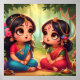 Sonriente, Radha Rani habla con un amigo en el bosque de Vrindavan.