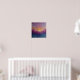 This vibrant poster features an abstract sunrise painting with swirling pinks, purples and golds melting into deep blues - fluid, radiant texture evoking calm energy.