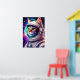 Vibrant digital art poster of a rainbow cat in an astronaut suit floating in a colorful cosmic space.