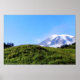 Una vista del monte Rainier y las verdes colinas circundantes en un soleado día de primavera.