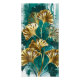 Rama con joyas, oro y hojas verdes de Ginko biloba en luz, fondo verde pintado. Ginko biloba