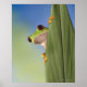 Rana roja teñida de té mirando desde atrás de una hoja | Zoológico digital | AssetID: dv1648007