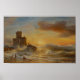 Las olas esclavan contra el viejo Castello sul Mare, donde el casco roto de un naufragio se encuentra destrozado en las rocas. Las nubes oscuras rompen sobre sus cabezas, y el mar se estrella con furia, inundando el puerto con sonido y movimiento. La pintura captura un momento dramático de destrucción y supervivencia.