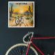pintura al atardecer de una bicicleta en el desierto rodeada de cactus