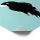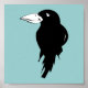 Imagen de un cuervo negro con un gran pico blanco. Parece estar sonriendo sobre algo.