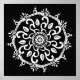 Esta mandala blanca se sienta sobre un fondo negro. Parte de la colección Payon Mandala.