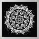Esta mandala blanca se sienta sobre un fondo negro. Parte de la colección Brosya Mandala.
