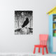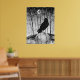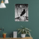 Póster Raven (pájaro negro) en bosques con luna y estrell