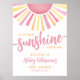 Póster Ray Of Sunshine Pink Sun Baby Shower Welcome Sign