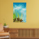 Un gran poster de color verde, azul y blanco para la decoración del hogar y de la oficina. El blanco brillante sobre un cián suave hace que sea genial para relajarse en el interior. Iluminarlo con lámparas difusas sutiles a blancas brillantes.