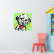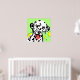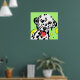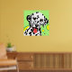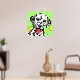 Arte de perro colorido con dálmata blanco con manchas negras sobre fondo verde claro con círculos amarillos