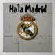 Muro de arte y decoración: Una tipografía audaz y moderna de "Hala Madrid" sobre un fondo geométrico minimalista