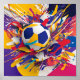 Muro de arte y decoración: una vibrante pintura acuarela de un fútbol con el logo del Real Madrid.